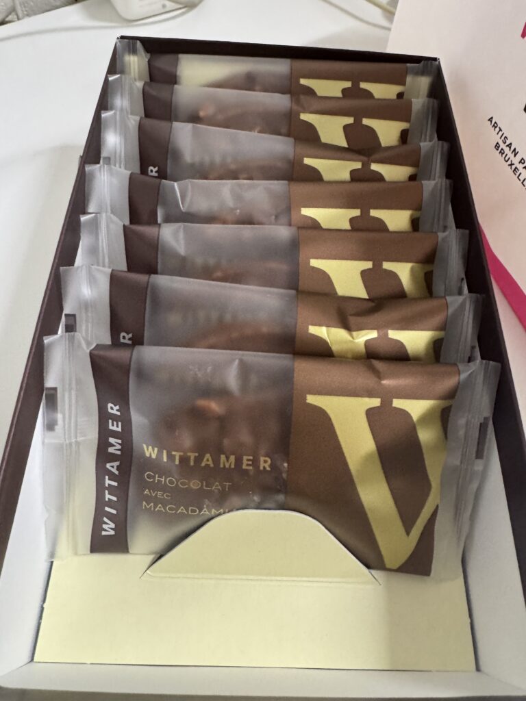 お客様からヴィタメールのチョコレートをいただきました! 高級感のあるパッケージを開けると、美味しそうなチョコがぎっしり