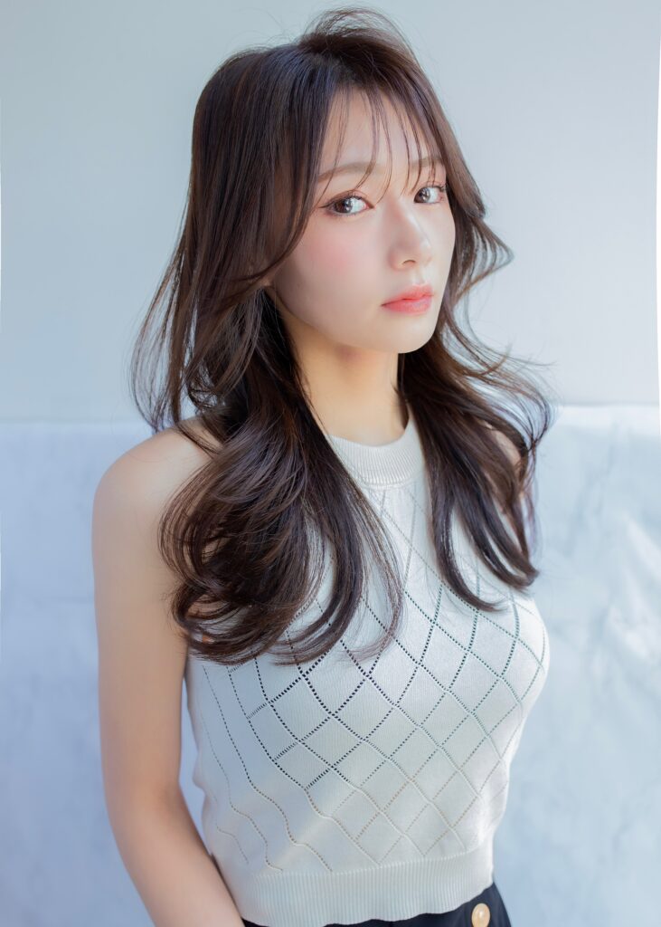 韓国ヘアならではのシースルーバング×くびれシルエットで、小顔効果も抜群!